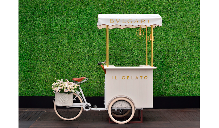 また、ブルガリならではの遊び心たっぷりのクラシカルなジェラート・トロリーが初登場。