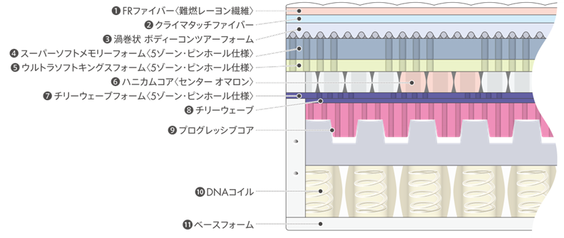 ・日本最高峰となる9インチのポケットコイルを採用することで、からだの凹凸を深