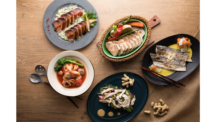 千葉で獲れた新鮮な初ガツオは、千葉産のゆずぽん酢をかけ、さっぱりとした味わいの『カルパッチョ』に。千葉の銘柄鶏である、錦爽鶏(きんそうどり)のムネ肉をやわらかく蒸しあげて、ピーナッツソースでサラダ仕立てにした『千葉産チキンのスチーム ピーナッツソース』も提供される。その他、つみれを煮込んだ白子町名物のブイヤベースをシェラトン流にアレンジした『ブイヤベース 白子スタイル』など、魅力溢れる品々が揃っている。
