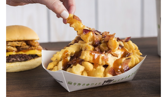 そして、シェイク シャックこだわりのホルモン剤フリーのアンガスビーフ100%パティにトッピングすれば、ジューシーなビーフにサクサクの食感がアクセントとなり、ひと口で2度おいしいバーガーだ。