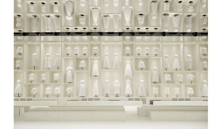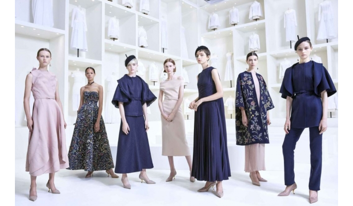 ショーの空間は、2017年、メゾン70周年を祝して開催された展覧会「クリスチャン・ディオール、夢のクチュリエ」の会場を想わせる純白のトワルに囲まれた特別な演出が施され、珠玉のルックがお披露目された。