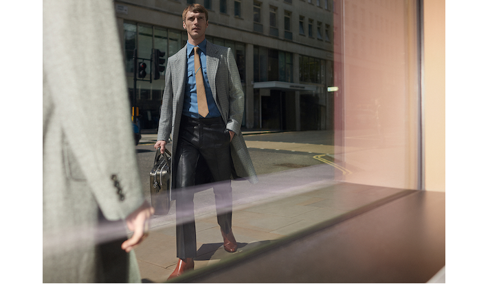 時代と共に移ろい変化する街ロンドンを歩くClementを、タイムレスな時が流れるアルフレッド・ダンヒル本店のボードンハウスの中から捉えることで、現実とフィクションが呼応し反響しあうような視覚的効果が生まれた。
