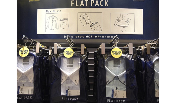 さらに同日、東京シャツはコンパクト化でビジネスマンの出張にも最適な新商品“FLAT PACK”(フラットパック)を発売した。