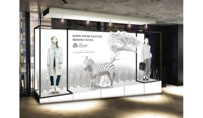 「BORN FROM NATURE, MERINO WOOL」をテーマに、館内の4箇所にウール製品を用いたぬくもりを感じるあたたかみのあるディスプレイを展開する。
