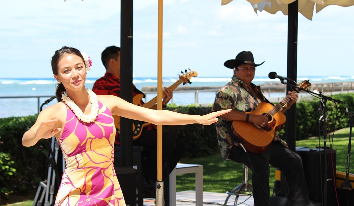 「天国にふさわしい館」という意味をもつハワイ・ワイキキのホテル「ハレクラニ」では、5月の毎週日曜日正午~午後2時半、 実力派アーティストがハワイアン音楽やフラを披露するスペシャルパフォーマンス「メレ・メイ」が開催される。