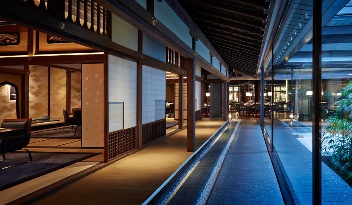 ホテルに足を踏み入れ、自然光が差し込むティーラウンジやスタイリッシュなバーを進むと、そこには重要な文化的遺産であり、歴史的建築でもある夷川邸が姿を現す。