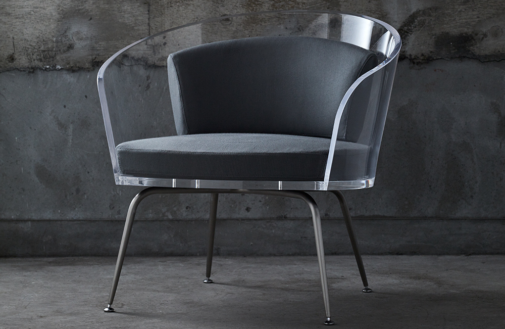新作は、30年以上家具デザイン一筋、人間工学に基づくデザインが、多くの建築家やインテリアデザイナー、インテリアコーディネーターなどのプロユーザーから支持され続けるAD CORE DEVISE INC. の「瀨戸 昇」氏をデザイナーに迎え、形状的なデザインだけでなく、アクリル家具製作における技術的な可能性を拡げる意欲的な新作を発表。
