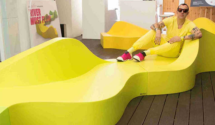素材にポリウレタンフォーム「フォルムコート」を施した革新的デザインが特徴の家具は、ソフトな触感を持ち、様々な空間にくつろぎを与え、世代を問わず創造的なシーンを可能にする。