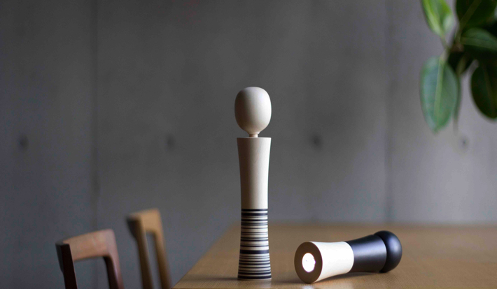 宮城県鳴子温泉のこけし職人の持つろくろびきの技術で1点1点手作りされるこけし型LEDライト。ノスタルジックなこけしが、現代の生活空間にも人の感覚にもすんなり馴染むライトになった。