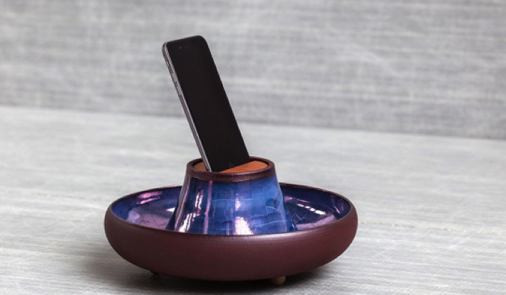 デンマークのプロダクトデザインユニットKiBiSiと笠間焼の陶芸家 伊藤公象とのコラボレーションから生まれたスマートフォン用の陶製アナログスピーカー。ボウル状の器と管楽器を掛け合わせたOTOは、ラッパ形状の筒部分でスマートフォンの本体に装備されている小型スピーカーの音を反響効果によって拡大させる。ボウル部分には小物が収納可能。