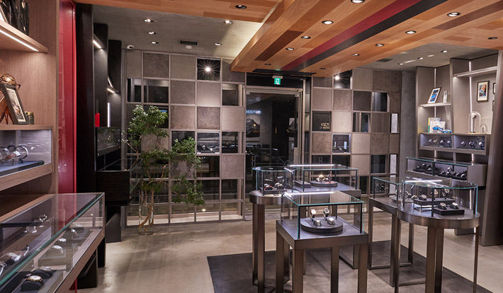 ウッド、ロック、スチールなどの素材感を活かした店内は、“本質を求める人々のための本物のウォッチ”を作り続けてきたTISSOTの真摯な志を具現化した。