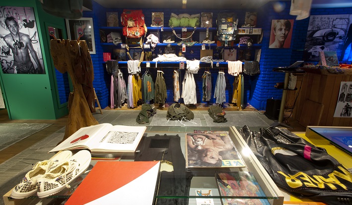 期間中、代官山「FREECITY」の店内は、壁面がピンクやブルー、グリーンなどで色とりどりに塗られ、床にはアーミーテントの生地。さらにはフリーシティにとって重要なキーワードである「bike」も天井から吊るされるなど、Nina Gardunoの監修によりL.A.のショップが再現されている。
