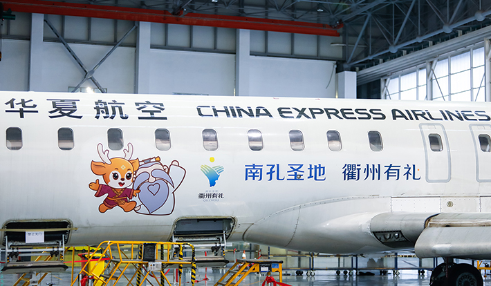 左)アーティスト徐明 右)CHINA EXPRESS AIRLINESの機体にも採用