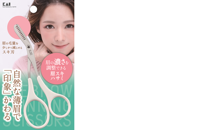 貝印は、長年培った刃物メーカーとしてのノウハウを活かし、眉用の小ハサミをスキハサミにした眉用スキハサミを開発。特に昨今のトレンド眉である太眉はどうしても主張が強くなりがちだが、このアイテムを使うことでナチュラルなふんわり太眉をつくることができる。