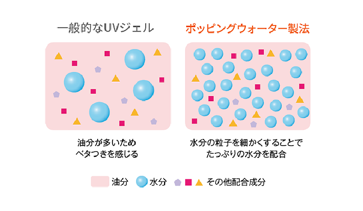 また、水分の粒子を細かくすることで通常のジェルよりも多く水分を配合した独自の「ポッピングウォーター製法」により、みずみずしいつけ心地を実現。日焼け止めの不快感なく使用できるのもうれしいポイントだ。