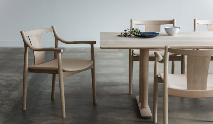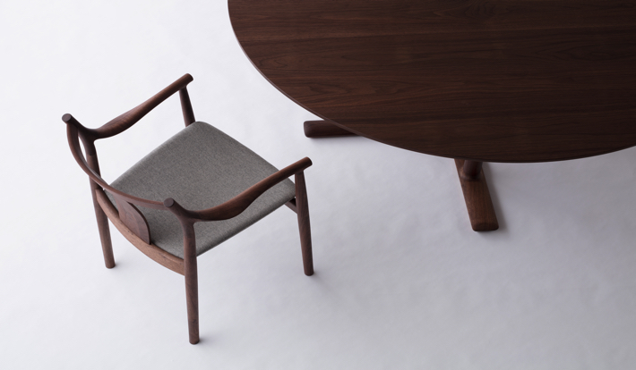 暮らしに溶け込む上質なダイニングセットとして、またホテルやレストランなどコントラクト向け家具としても想定し、国内・海外、用途問わず、 様々なインテリアに合わせやすい。