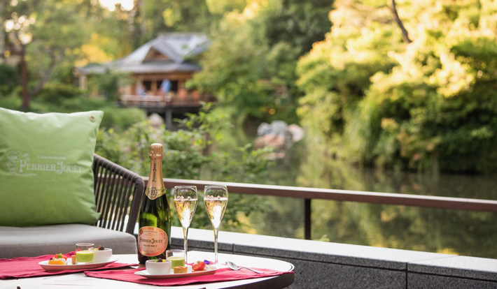プレステージ・シャンパーニュメゾン「ペリエ ジュエ」の世界観を感じながら、フリーフローでシャンパーニュを愉しめる「ペリエ ジュエ シャンパンガーデン」が、フォーシーズンズホテル京都の1Fにあるレストラン「ブラッスリー」の屋外テラスにて、2019年7月21日(日)までの期間限定でオープンしている。