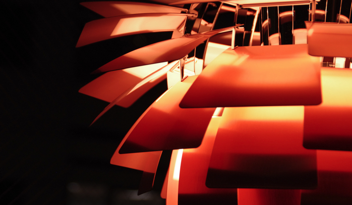 このオリジナルに近い形で発表されたPH Artichoke 銅 / ローズ。羽根の裏側が通常のホワイトから淡いローズ色になり、また、羽根の表面の光沢感も通常仕様よりも強くなっている。