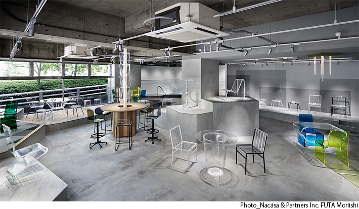 透明なアクリル樹脂素材をベースにした家具ブランド「TRANSPARENCY(トランスペアレンシー)」のショールーム「TRANSPARENCY and more」が京橋にオープンした。