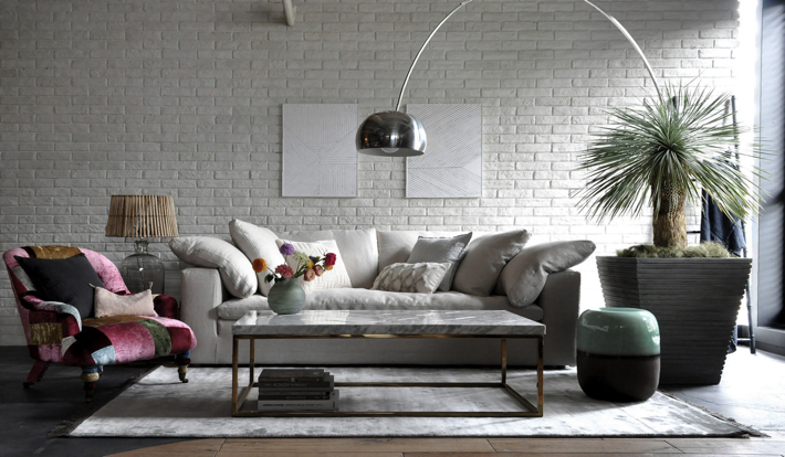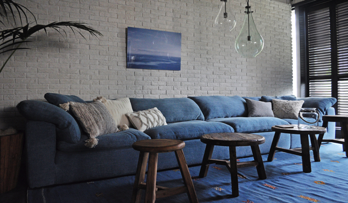 100%天然の植物染料、羽毛、天然のリネンを使用したソファーセットをメーンに、古材のテーブルや、手織りのラグ・クッションカバー、手吹きガラスで作られたペンダントランプなど魅力的なラインナップが揃う。