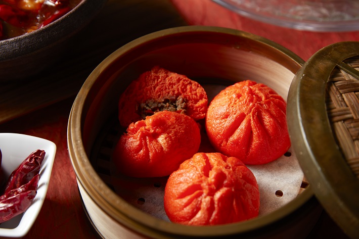 また、中身だけではなく鮮やかな濃いオレンジ色の生地が辛さを主張する「麻辣肉包 (プチマーラーまんじゅう)」も登場し、点心でも麻辣メニューを提供。点心以外の料理は辛さのレベルを変えられる点も、「シビ辛」ファンには嬉しい。