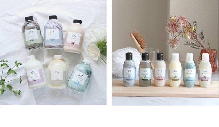 ■ポンプボトルとつけかえ用ボトルのアイコンに注目!つけかえ用ボトルを選ぶときも“楽しさ”を。