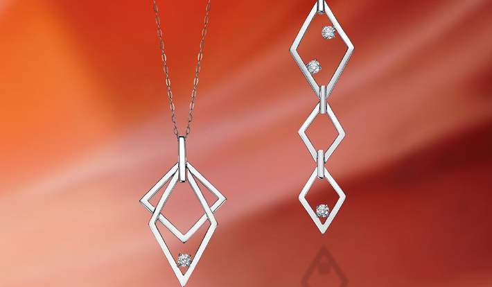 ダイヤモンドの優良原石といわれる正八面体原石から着想を得たネックレス。