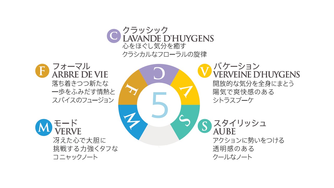 クローゼットからお気に入りの洋服を選ぶように、シーンに合わせたおしゃれを楽しむよう、ファッション感覚でアロマを楽しむ鮮やかな香りのコレクションが特徴。