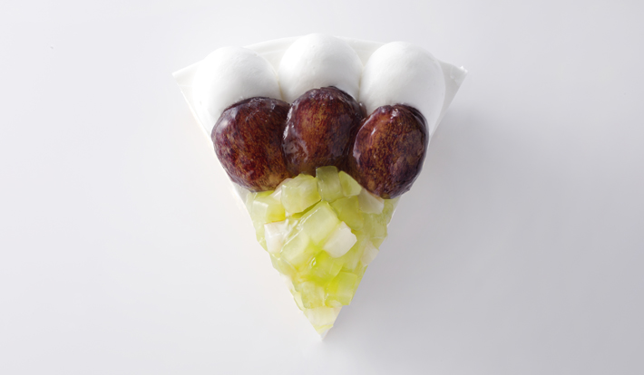 滑らかな口当たりとスッキリした後味のクリームは、 ぶどうの持つ華やかな香りと上品な甘みを引き立てる。