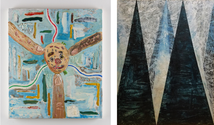*画像(中央左):出品イメージ作品(左:赤羽史亮「touch」、右:前田紗希「18_5」)