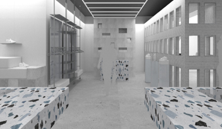 内装デザインを手掛けたのは、ニューヨーク を拠点に活躍し、「KITH」、「Billionaire Boys Club」のフラッグシップストア、2017年にはミラノの「Valextra」などを手掛けたSnarkitecture。