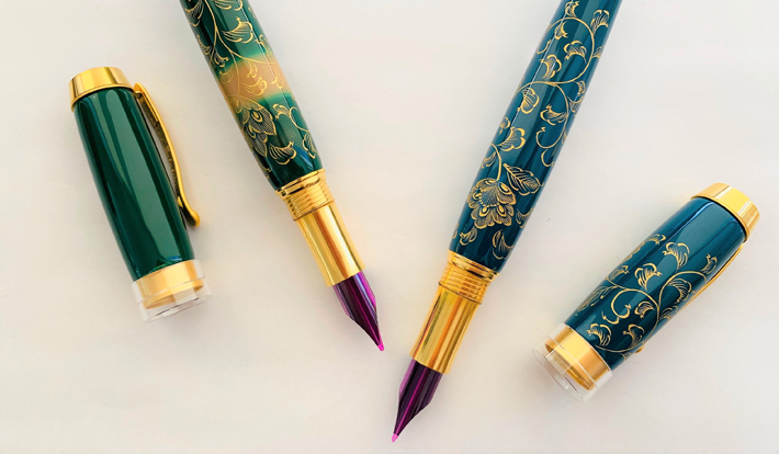 秋田研磨工業の「KEMMA」は万年筆史上初めて、 人工ルビーやサファイアガラスといった宝石をあしらった特別な万年筆を制作した。 ペン先からキャップまでの全部の部品を秋田県内で製造した高級万年筆だ。