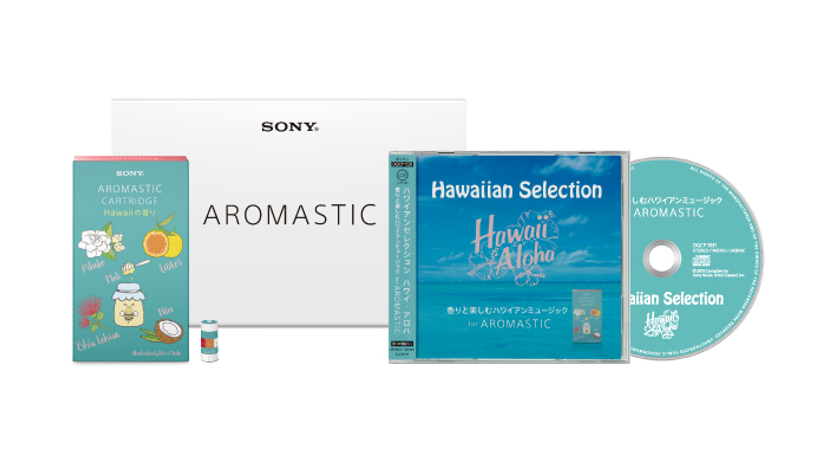 「AROMASTIC CARTRIDGE Hawaiiの香り CDセット」は、株式会社ソニー・ミュージックダイレクト(*)とのコラボレーションによるカートリッジとオリジナルCDのセット。