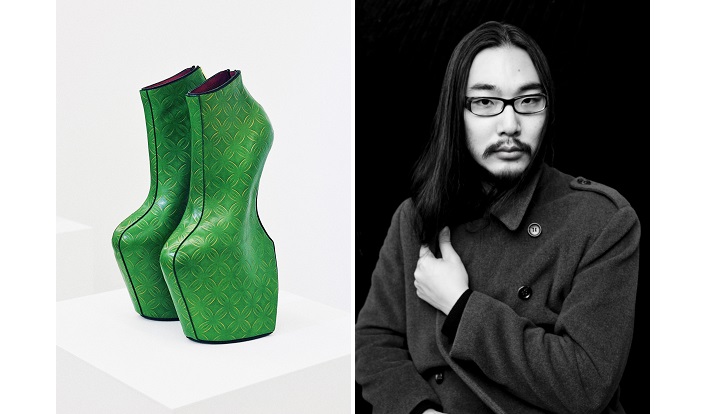 そのほか、舘鼻氏の代表作である、レディー・ガガも愛したヒールレスシューズや、大型絵画の新作も展示。