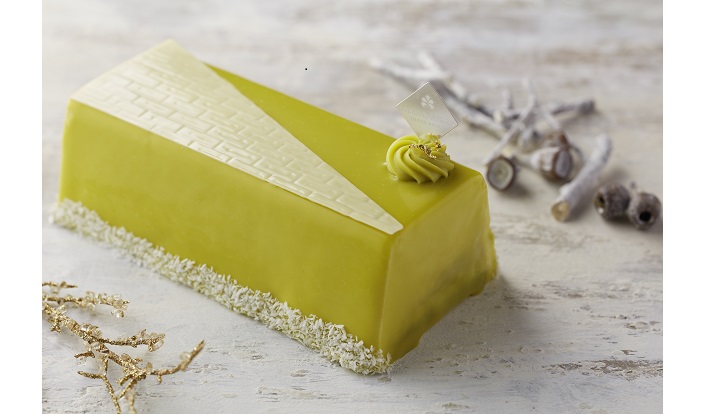 ムを合わせ、ピスタチオ風味のチョコレートでコーティングしました。