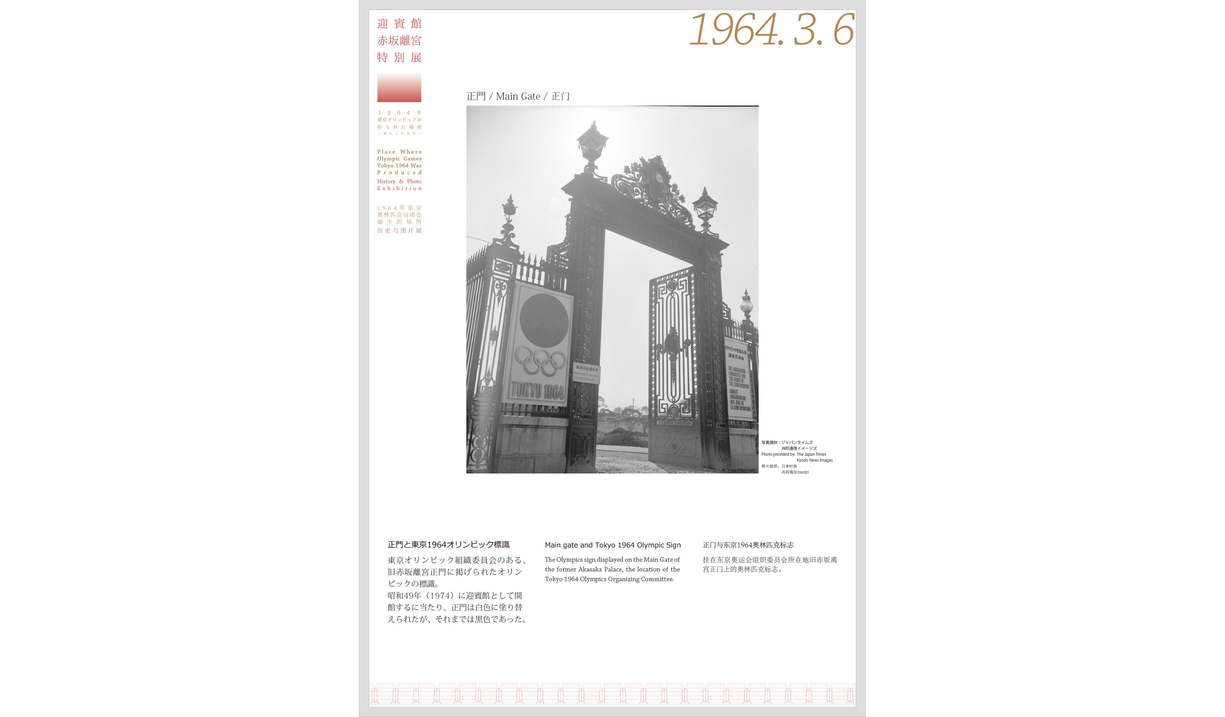 ■「迎賓館赤坂離宮特別展~1964年東京オリンピックが作られた場所~(歴史と写真展)」 概要