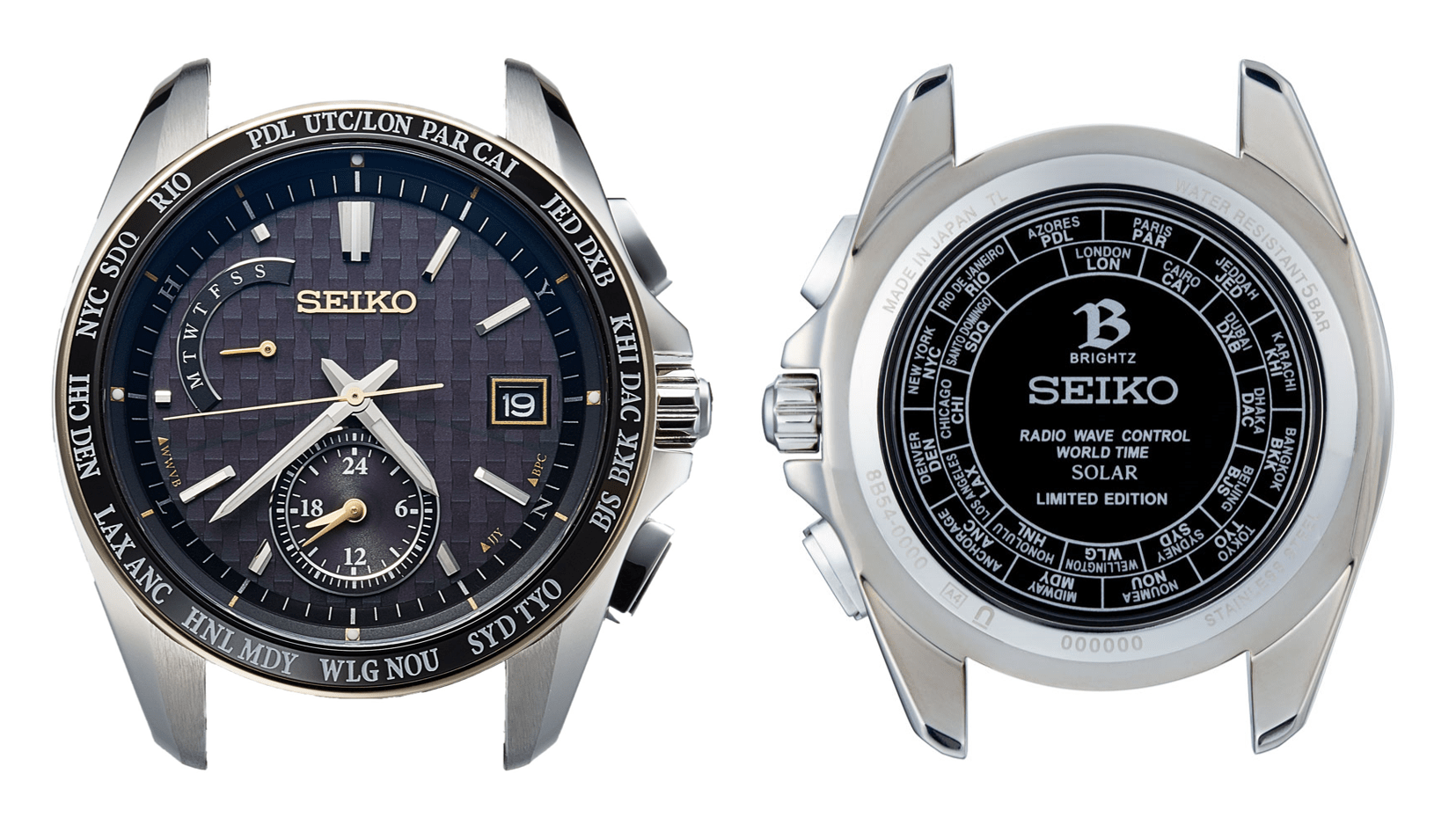 ・ソーラー電波時計の「ワールドタイム」モデルをベースにwena wristオリジナルのデザインを施し、上品なゴールドをバランスよくあしらっている。裏蓋には“LIMITED EDITION”の表記あり。