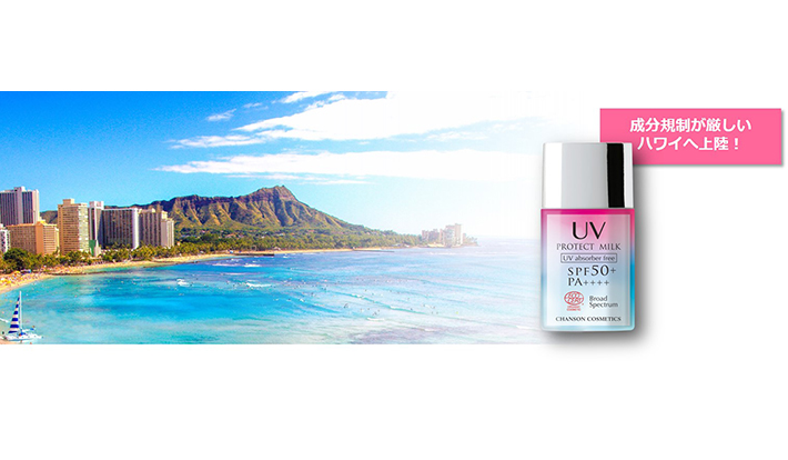 ハワイでは、2021年1月より「紫外線吸収剤」を含んだ日焼け止めの販売を禁止する法律が施行されることになっており、シャンソン化粧品では日本の国内だけでなく、ハワイの美しい海とサンゴ礁を守りたいという思いから、ハワイで販売する運びとなった。