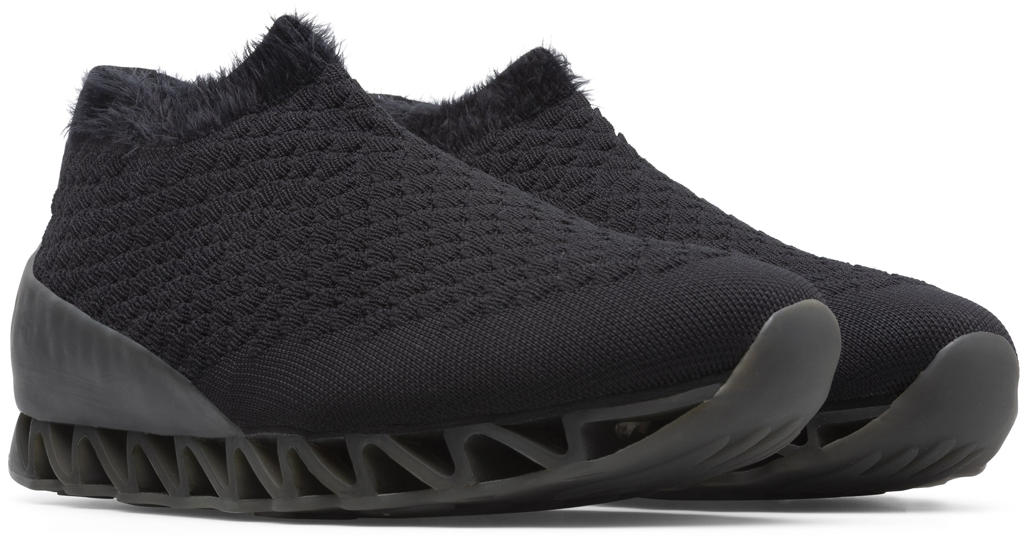 1つ目のコンセプトは、前回に引き続き“ソックス”と“スニーカー”を融合したハイブリッドシューズ。ジグザグのアウトソールが特徴的な「ヒマラヤン」シリーズをべースに、ソックスとスニーカーを融合させており、アッパーはエラスティックの糸で編まれた1枚のニットになっている。