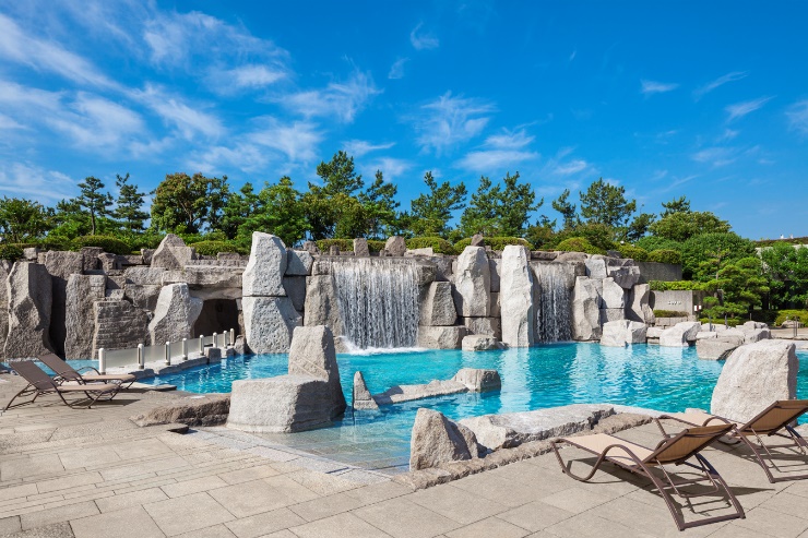 リゾート感満載、シェラトンホテル自慢の迫力満点の滝が流れる庭園内の「ガーデンプール」が、今年もオープンしました。もちろん夜には、ガーデンプールが“大人な空間”を演出する「ナイトプール」に様変わり。シェラトンホテルのナイトプールは、非日常を味わえることから毎年好評です。シェラトンホテルでしか味わえない特別な夏をお過ごしください。