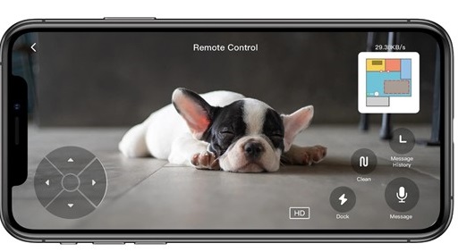2眼カメラで撮影している映像は、スマートフォン(スマホ)のアプリで見ることができるため、留守中の自宅の見守りとして、部屋の様子をリアルタイムで確認することができます。さらに、スマホアプリを使い、遠隔から本体を操作できるので、外出先からペットの様子を確認したり、搭載しているスピーカーから声をかけることも可能です。