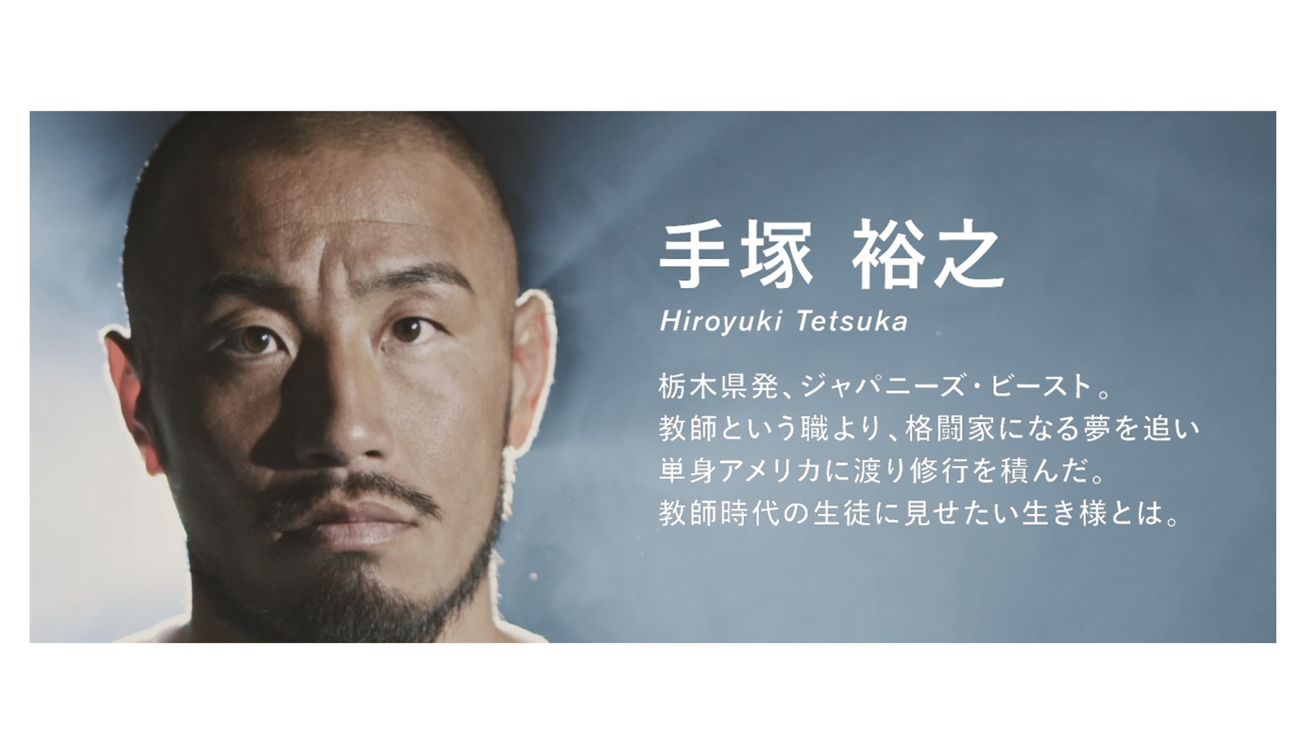 パンクラスウェルター級世界王者の手塚裕之は、農業を営む家庭に生まれ、現在も格闘家として活躍するかたわら、家業を手伝い続けている。学生時代にキックボクシングに2年間取り組んだが、思ったような結果が出なかった。 だが、格闘技への情熱は覚めることなく、総合格闘家としてのキャリアを追求するため渡米。米国の有名なベテラン選手のチェール・ソネンとトレーニングをするという貴重な機会を得て、アマチュアとして北米で競技に参加し始める。2年間米国に滞在した後日本に帰国し、プロデビュー。