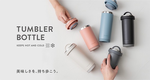 『タンブラーボトル』とは、タンブラーの良さとマグボトルの良さを掛け合わせた、全く新しいハイブリットな容器。
