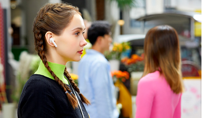 通勤や通学、オンライン会議など様々なシーンでご活用いただけるイヤホンに仕上げられている。音楽を聞くときも、10mm の大型ダイナミックドライバーを採用し、HUAWEI Audio Lab でチューニングを行い洗練された音を楽しめる。また、オンライン会議ではデュアルマイクによる通話ノイズキャンセリングで、クリアな声を相手に届けることができる。