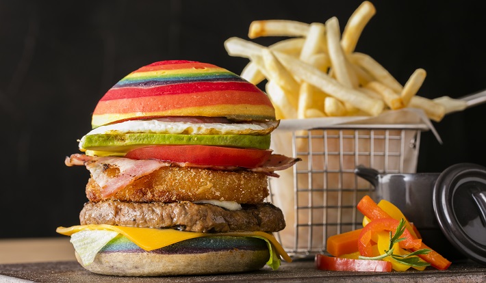 「グリロジー バー&グリル」には、フォトジェニックな鮮やかなカラーが特徴の「レインボーバー ガー」を含む2種類のハンバーガーと、ケサディーヤが登場。