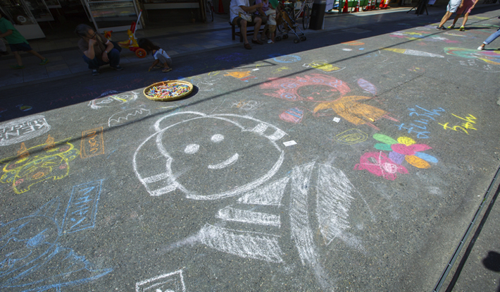 ・チョークで落書き(古町通2・3番町)