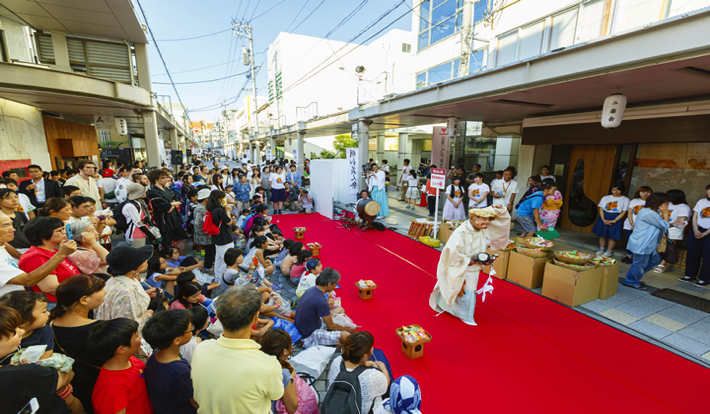 お祭りでは終日、屋台、紙芝居や明和義人行列、古町芸妓の舞、奉納盆踊り(蜑の手振り)などが開催される。メイン行事である「明和義人行列」は、一般公募で選ばれた主役と共に、江戸時代の町民に扮して参加者が商店街を練り歩く。さらに商店街の道路で1日落書きし放題「チョークで落書きコンテスト」も開催。普段は怒られてしまう落書きも、この日ばかりはやり放題!見どころ満載の「明和義人祭」の中で、“日本最大級”といわれているのが、「明和神菓まき」。なんと、約3万個ものお菓子が無料で配布される。昨年は約2万人ほどが来場し、12ものイベントが用意され誰もが楽しめる人気のお祭りとして地域活性の一躍となっている。江戸時代を感じるこのお祭りで、夏の終わりを遊び倒してみては。