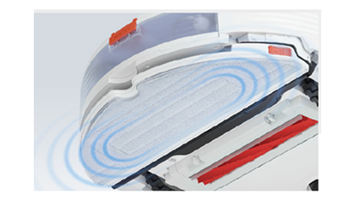 毎分最大3000回動く高速振動モップを新開発。さらにモップ加重を従来製品比2倍※4の600gに強化した。皮脂、コーヒー、花粉など、こびり付いた汚れが気になる方に最適。