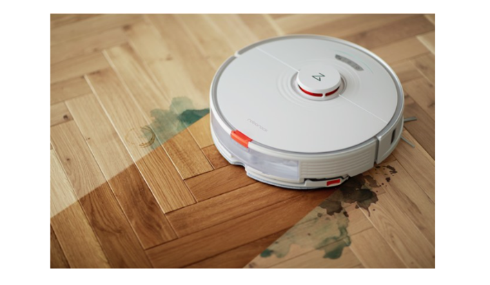 Roborock S7+は、水拭きがさらに進化し、Roborock初のスマート自動収集ドックを搭載した最上位モデルだ。水拭きにおいては、毎分最大3000回のモップ高速振動機能などを搭載し、こびり付いた頑固な汚れにも対応。
