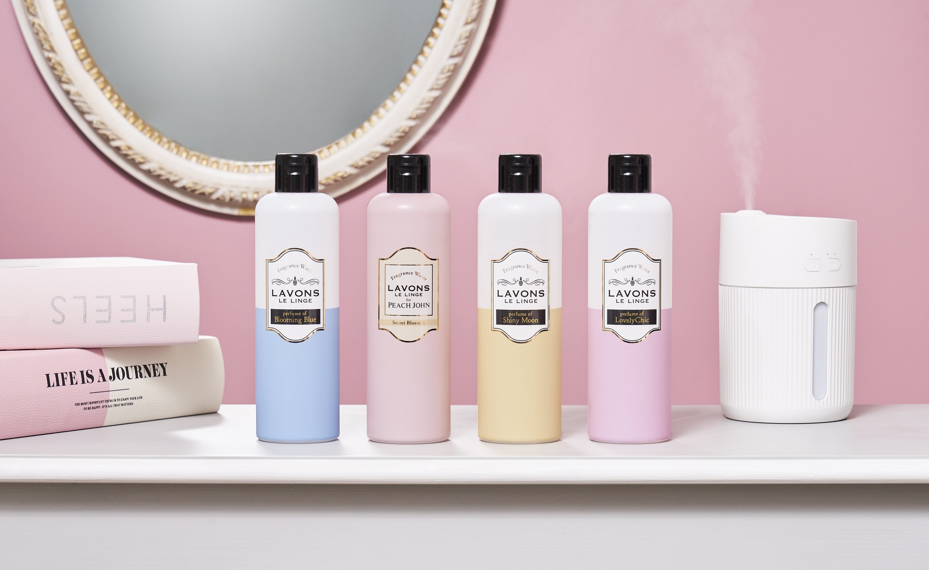 昨年好評の「シャイニームーン」「ラブリーシック」「ブルーミングブルー」の香りに加え、PEACH JOHNコラボの「シークレットブロッサム」の香りを新たにラインナップ。